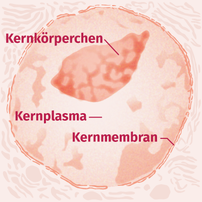 Alle unsere Zellen sind durch eine dünne Zellmembran von ihrer Umgebung getrennt, in der sich eine gallertartige Substanz, das Zellplasma, befindet. Neben vielen anderen winzigen Zellbestandteilen finden wir in jeder Zelle auch den Zellkern, der ebenfalls von einer dünnen Membran umschlossen wird, die als Kernmembran bezeichnet wird.