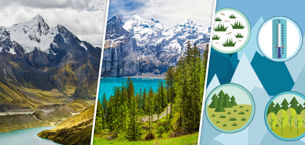 In Bergregionen sind die Temperaturen das ganze Jahr über niedriger und die jährliche Niederschlagsmenge ist hoch. Mit zunehmender Höhe bilden sich die entsprechenden Klimazonen. Die Nivellierung wird durch die an das Klima angepasste Vegetation verdeutlicht.